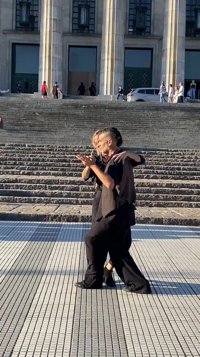 Tango couple performs romantic dance at Buenos Aires university