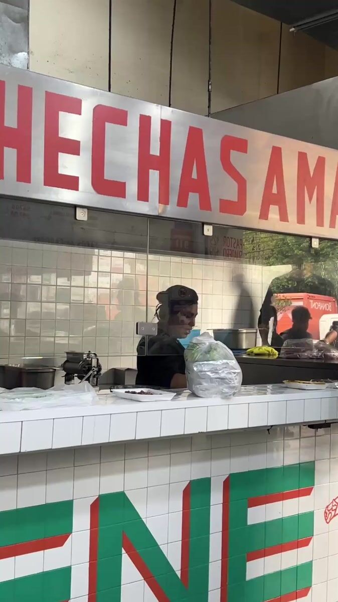 Topics: tortilla stand, food service, street food, restaurant, customer service, food preparation, commercial, urban, hospitality, daily life