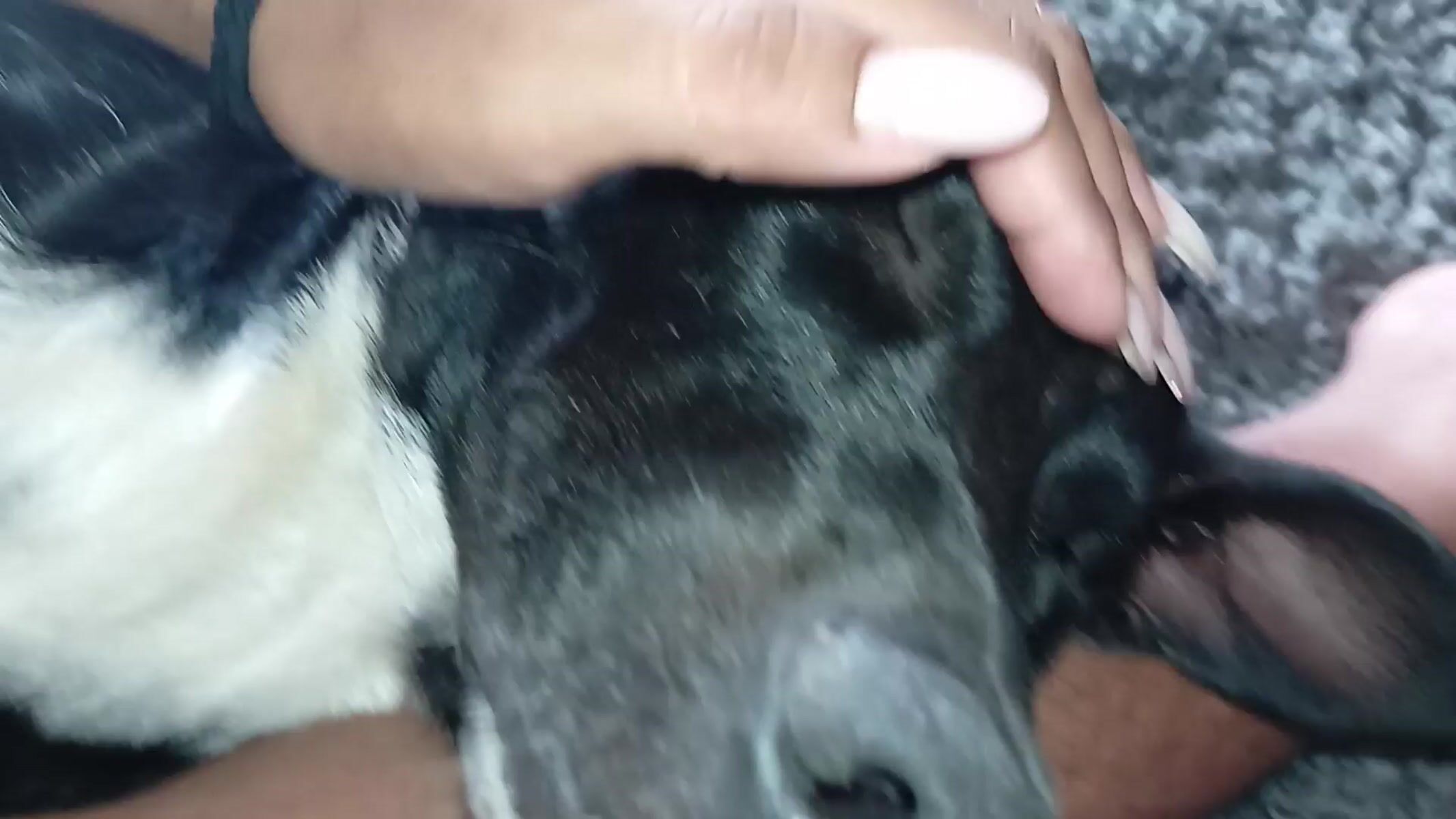 Topics: pet interaction, dog petting, goat holding, animal care, domestic animal, quiet afternoon, home life, daily life, social, rural