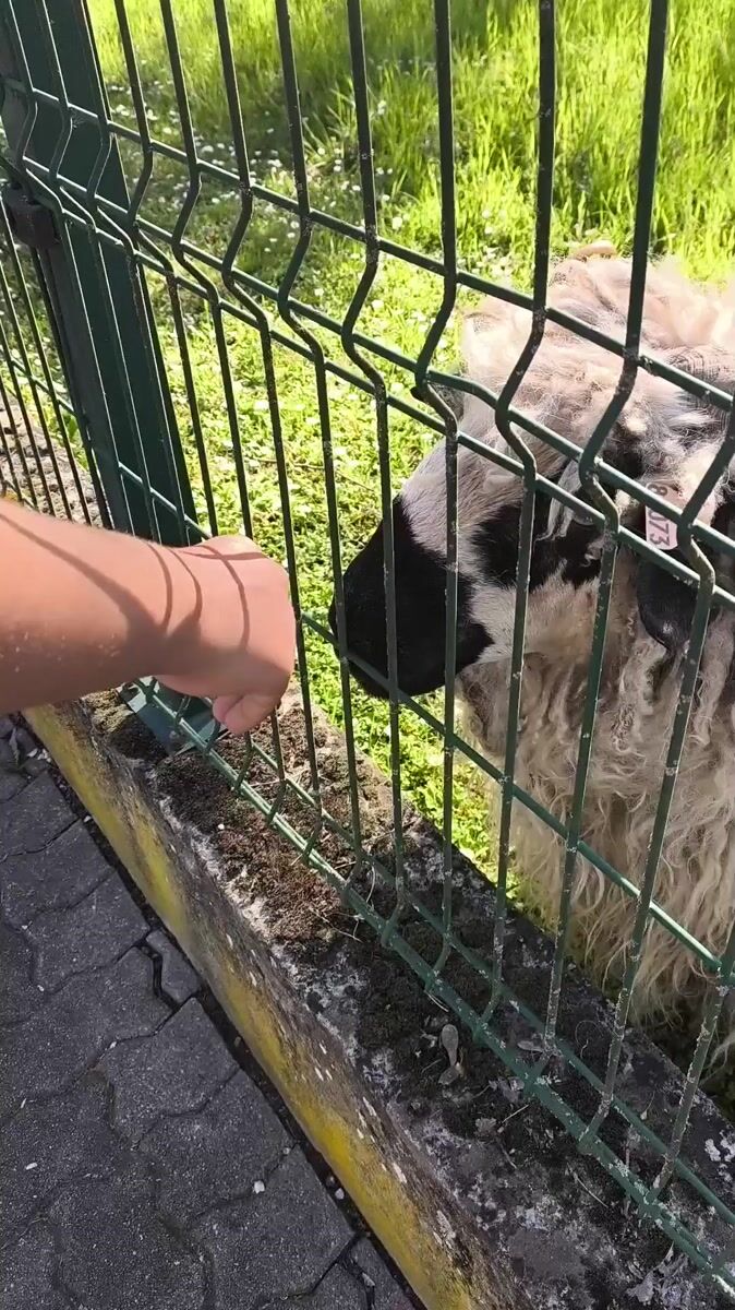 Topics: sheep petting, fence interaction, animal filming, urban livestock, grazing animals, animal encounter, outdoor activity, urban nature, daily life, social