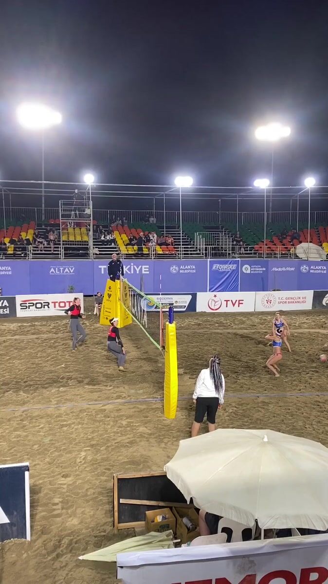 Night beach volleyball match draws crowds in Alanya, Turkey