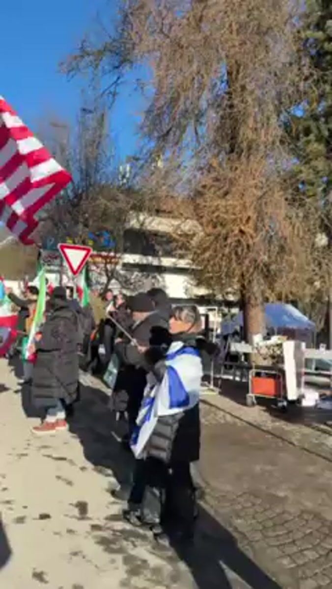 Topics: trump speech, world economic forum, street protest, political event, international flags, davos meeting, political gathering, politics, international, news