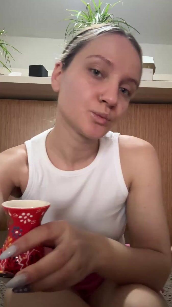Woman enjoys traditional Turkish tea and food in Esenyurt