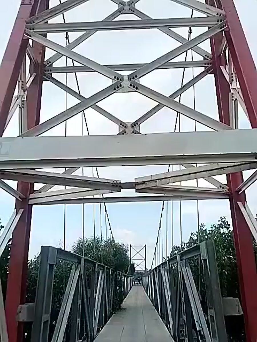 Tourist documents suspension bridge visit in Lhokseumawe, Indonesia