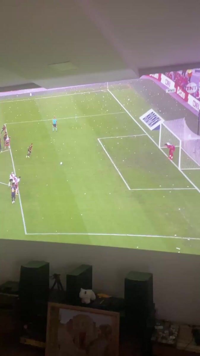 Topics: penalty kick, soccer viewing, backyard projector, soccer match, outdoor viewing, sports watching, social gathering, entertainment, sports, daily life