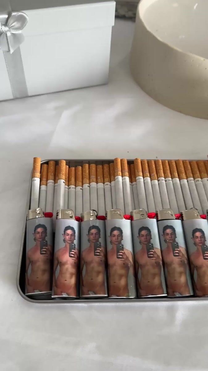 Table with cigarettes, fruits, and miscellaneous items filmed in Köln
