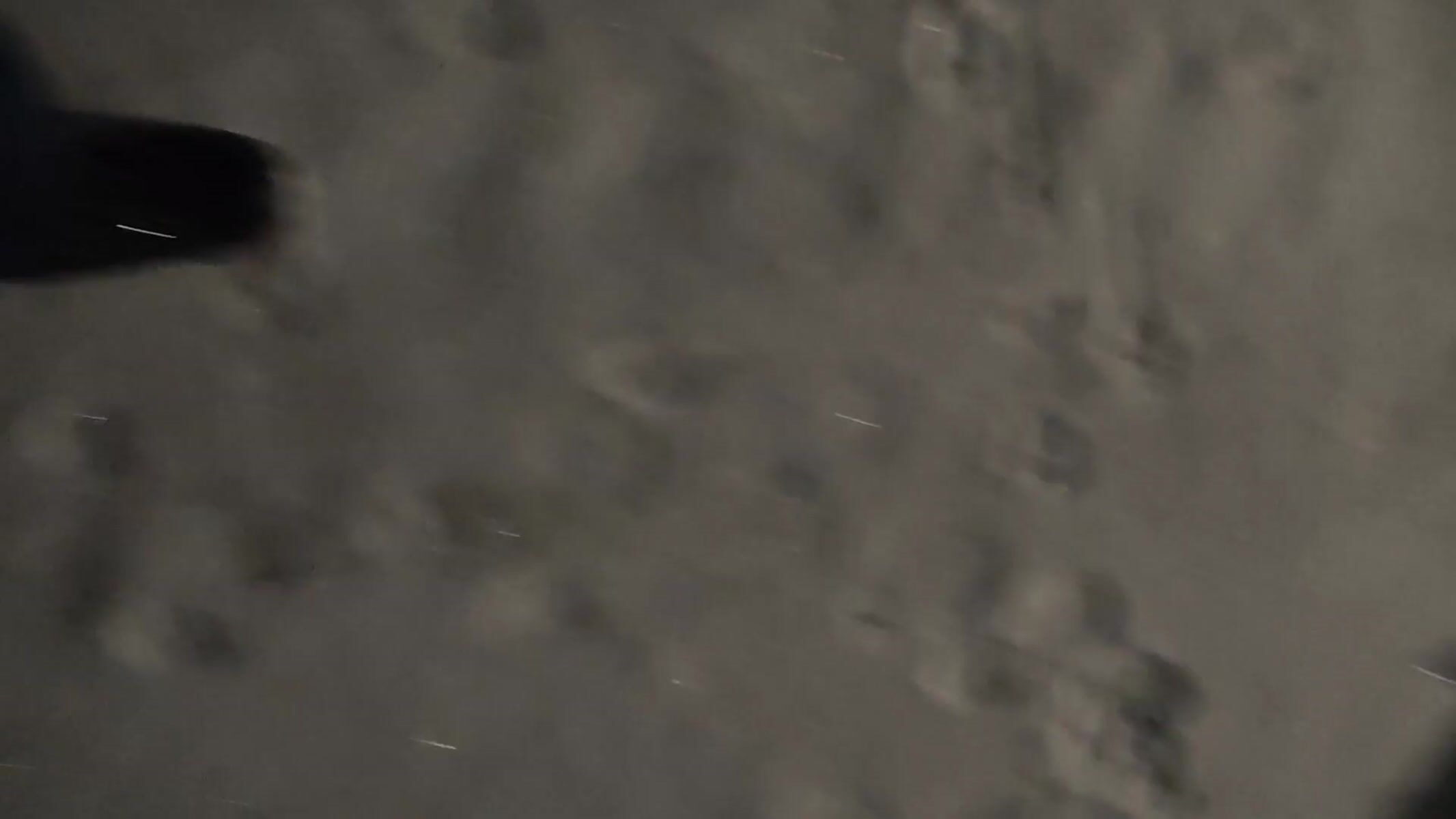 Dogs play in fresh snow during Russian nighttime