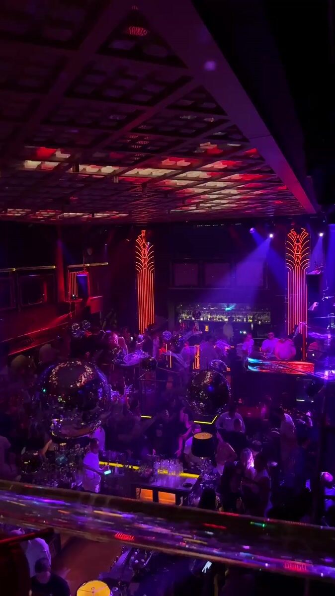 Topics: nightclub, dancing, crowded venue, nightlife, social gathering, entertainment, urban nightlife, social, recreation, nighttime