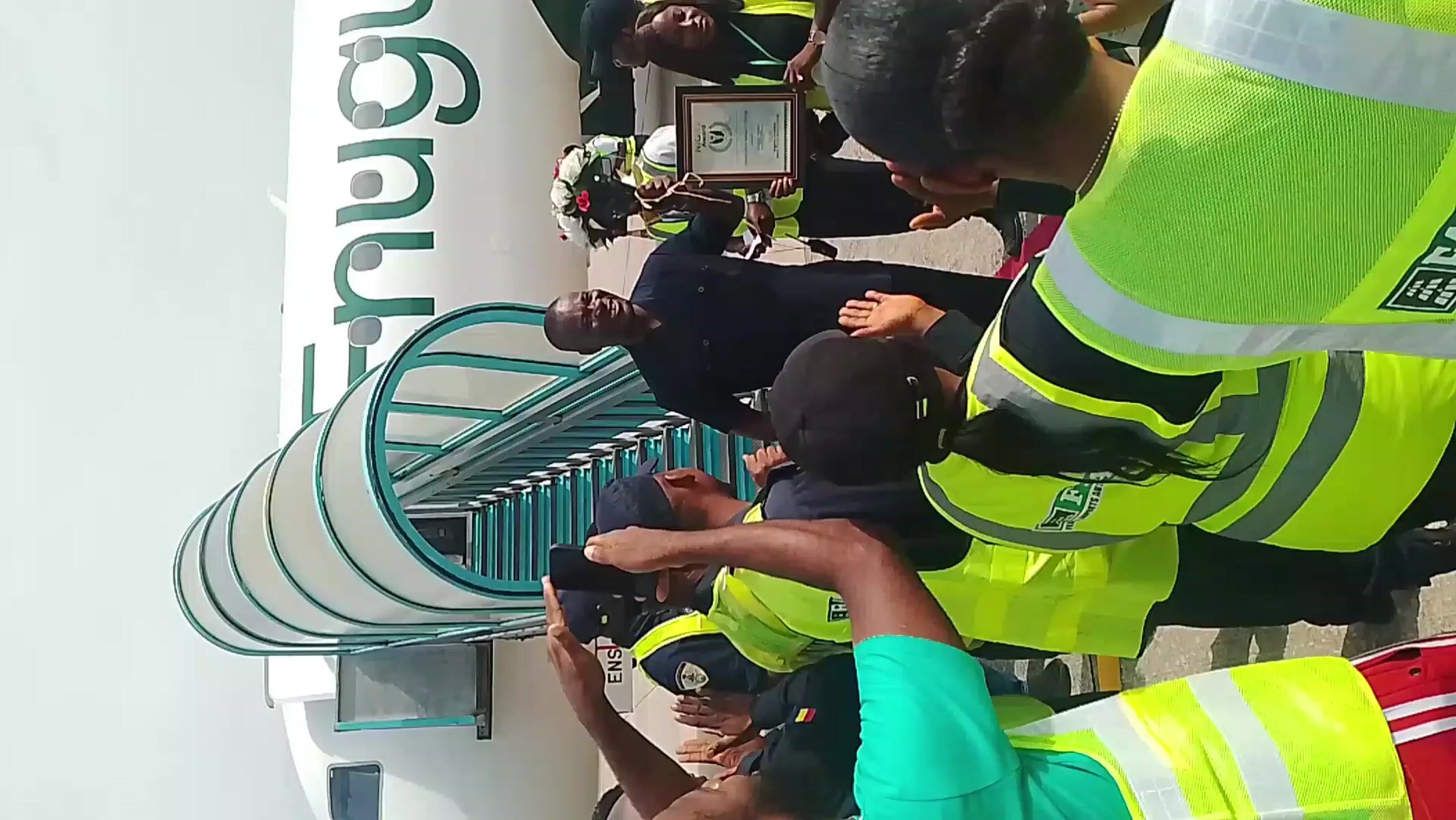 Topics: enugu air, ground operations, passenger boarding, airport, commercial aviation, tarmac activity, transportation, travel, infrastructure, daily life