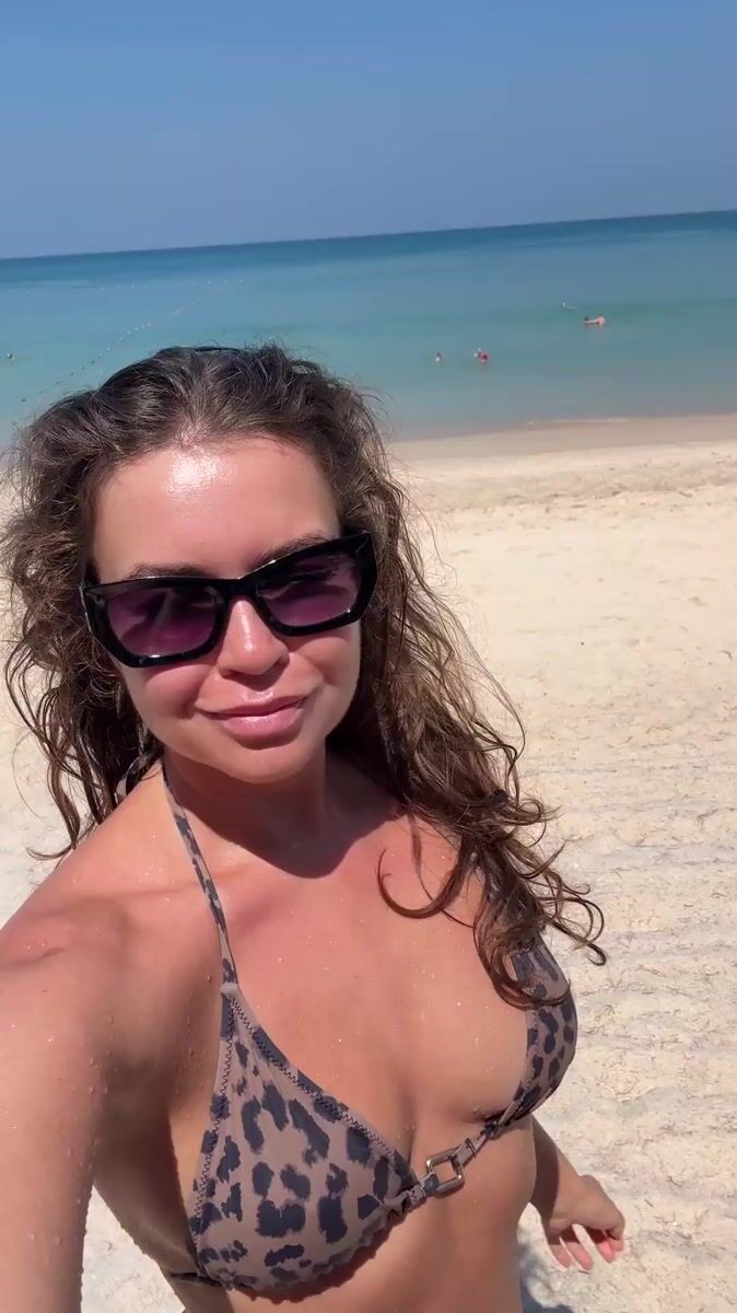 Topics: leopard bikini, beach swimming, sandy beach, beachgoer, swimwear, resort area, beach life, leisure, tourism, daily life