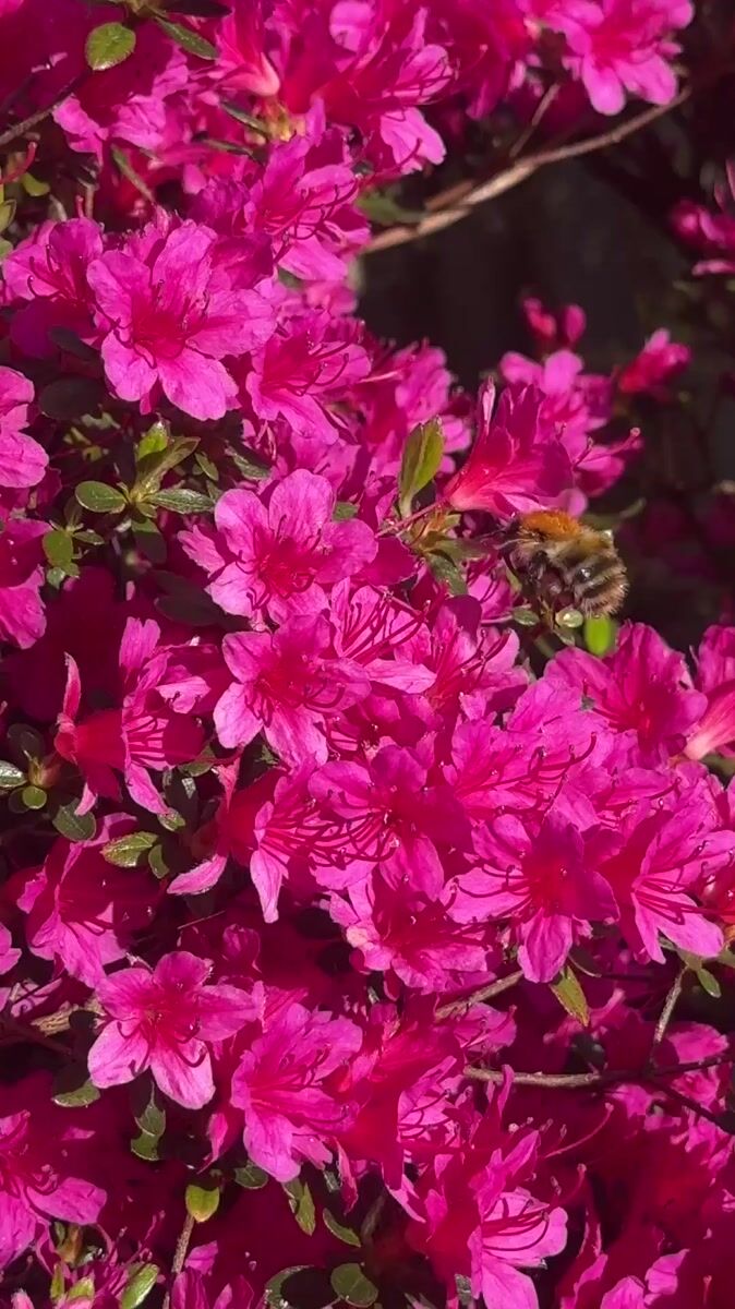 Topics: garden maintenance, bee foraging, patio cleaning, gardening, outdoor work, springtime, domestic, nature, residential, daily life