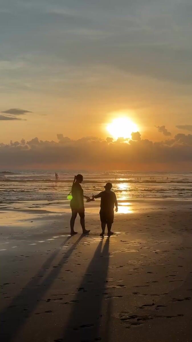 Topics: beach sunset, golden sky, silhouetted figures, dramatic clouds, sunset photography, beach scene, nature photography, coastal, landscape, daily life