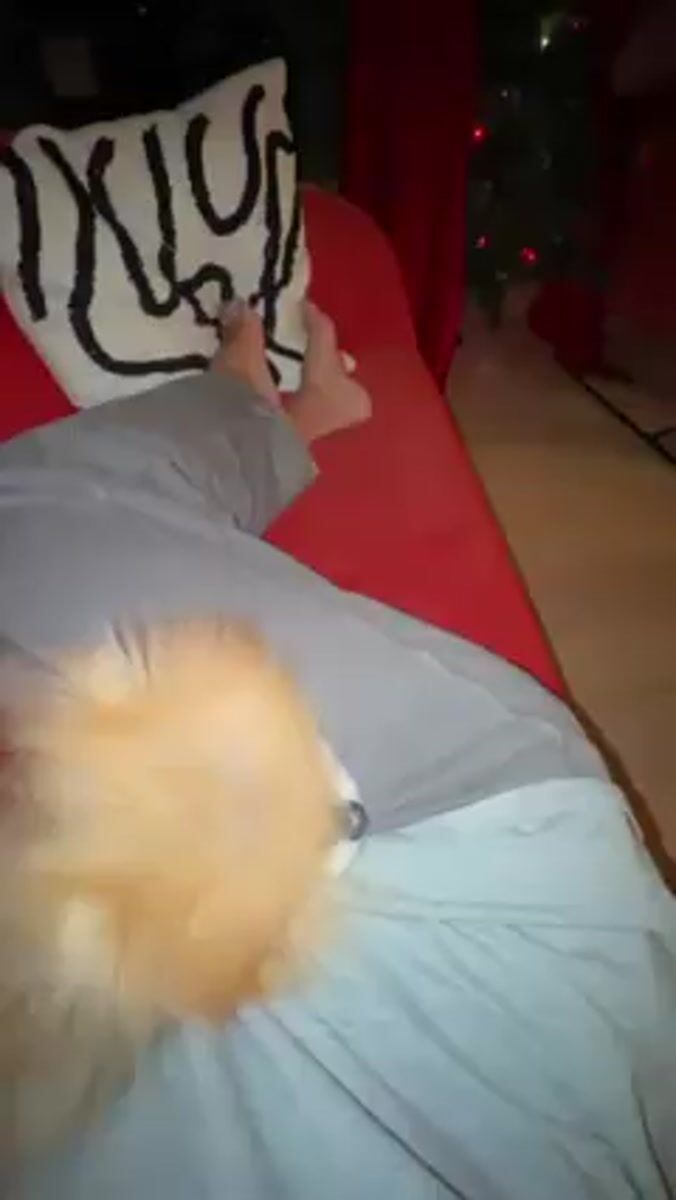Woman relaxes with Pomeranian, cooks in Warsaw apartment