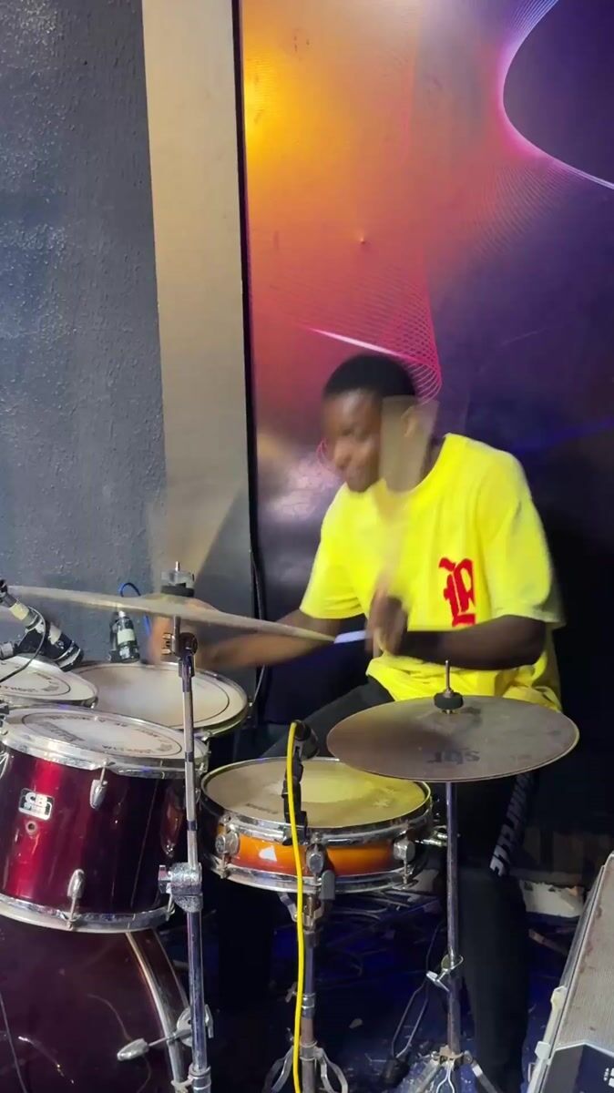Drummer practices late night in Onitsha music studio