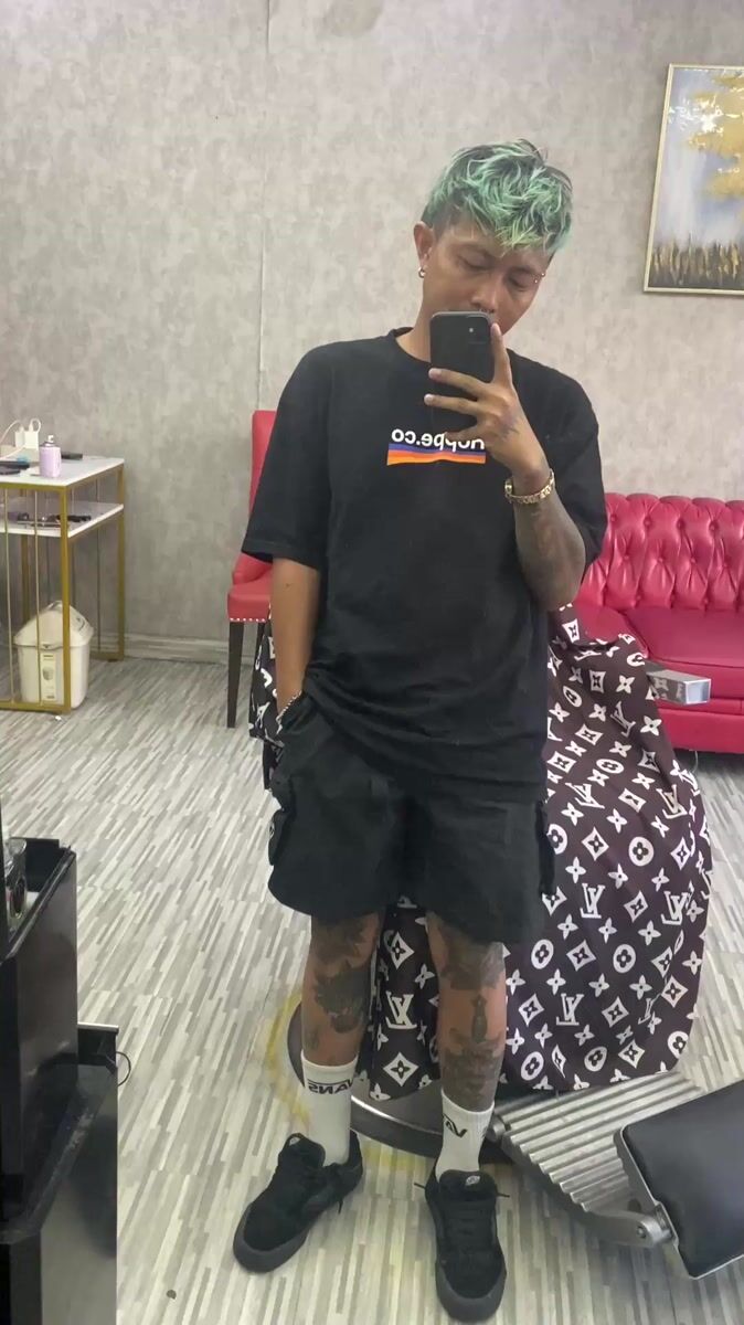 Topics: selfie, barbershop, late night, tattoo, green hair, beauty service, nightlife, personal, urban, daily life