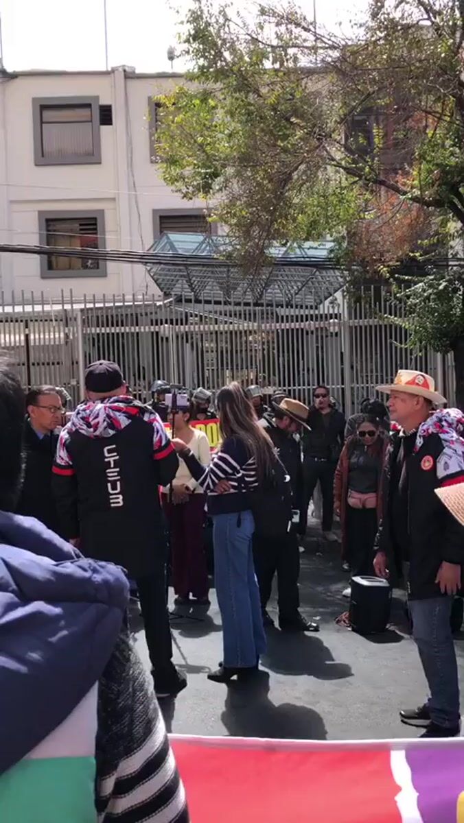 Crowd gathers for street demonstration in La Paz, Bolivia