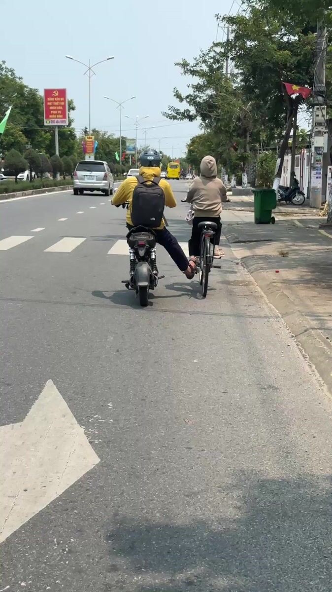 Topics: crosswalk, moped, bicycle, morning commute, street crossing, transportation, urban mobility, traffic, daily life, urban