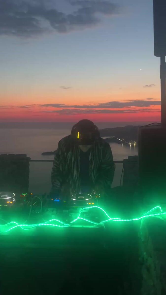 Topics: dj performance, beach relaxation, mountaintop event, music performance, coastal leisure, outdoor entertainment, montenegro tourism, lifestyle, recreational, scenic