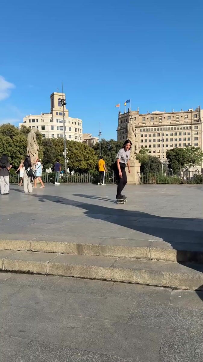Topics: skateboard ollie, street skating, urban plaza, skateboarding, street sport, youth culture, urban recreation, public space, street life, daily life