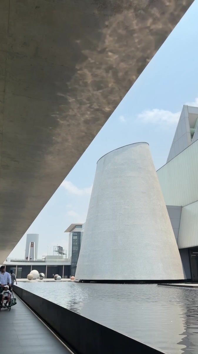 Topics: reflecting pool, conical structure, granite sphere, modern architecture, plaza, cultural center, urban, public space, contemporary, daily life