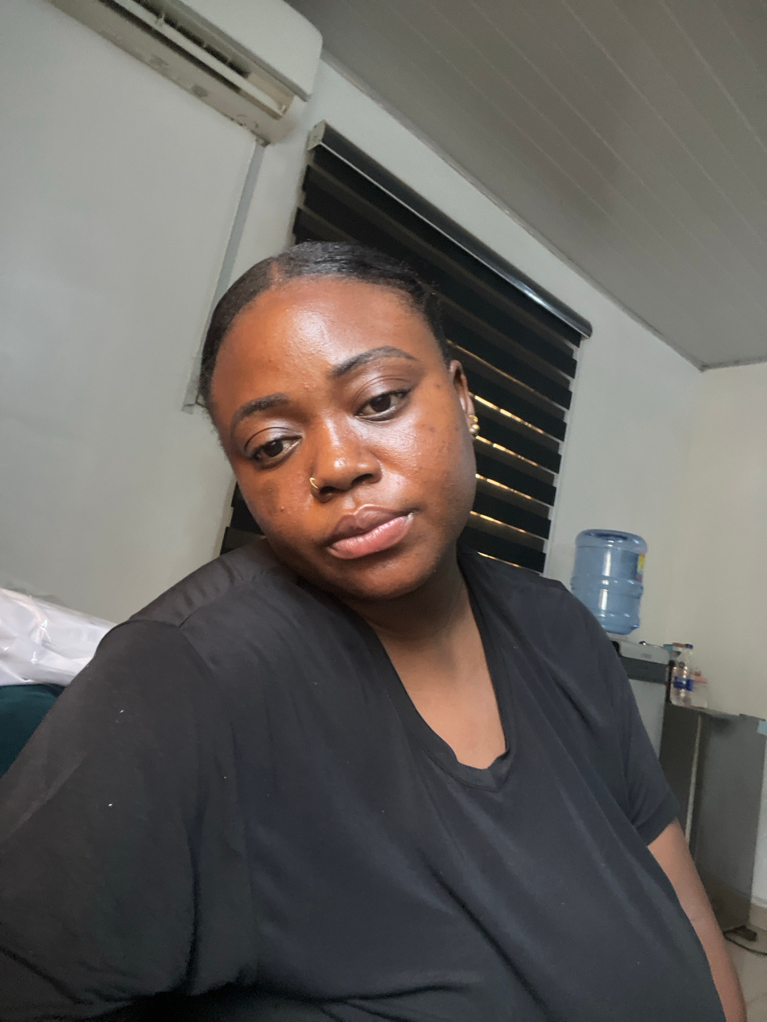 A medium indoor shot depicts a dark-skinned woman with a nose ring wearing a black shirt. An air conditioning unit is visible on the lower left. In the background, there is a water dispenser on top of…read more