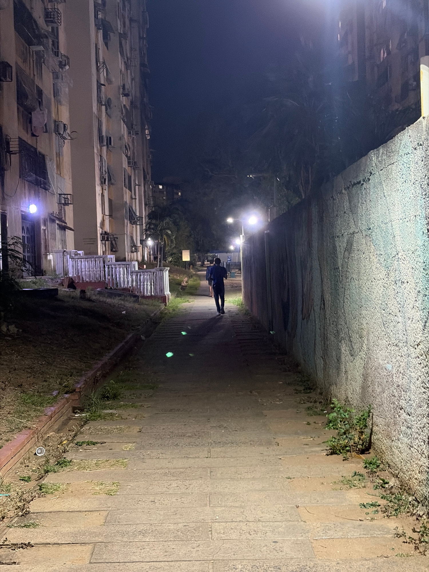 The image shows a person walking through an underpass in Ciudad Guayana, Venezuela. The underpass has concrete walls and a paved walkway. There are buildings to the left and vegetation along the right…read more