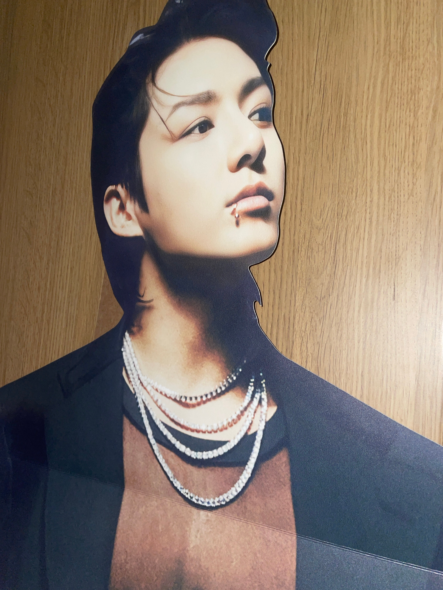The media file features a large, portrait-style cut-out of a person, positioned on a light-colored wooden surface. The cut-out is rotated 90 degrees clockwise, with the person's head on the left sideβ¦read more