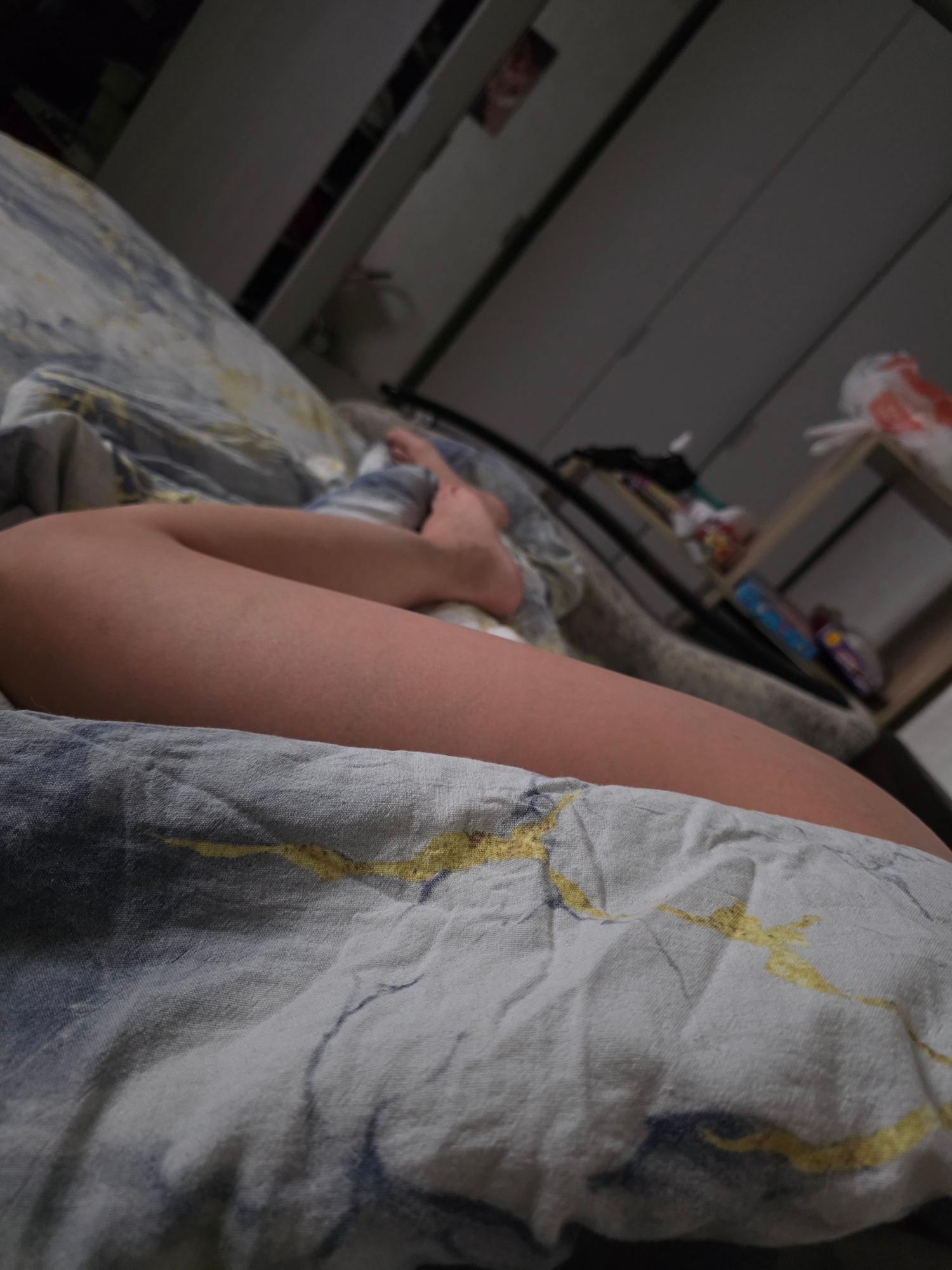The photograph depicts a person lying in bed. An arm is visible, resting on patterned bedding. The background is blurred, but a shelf unit is discernible. The location and city information mentioned,…read more