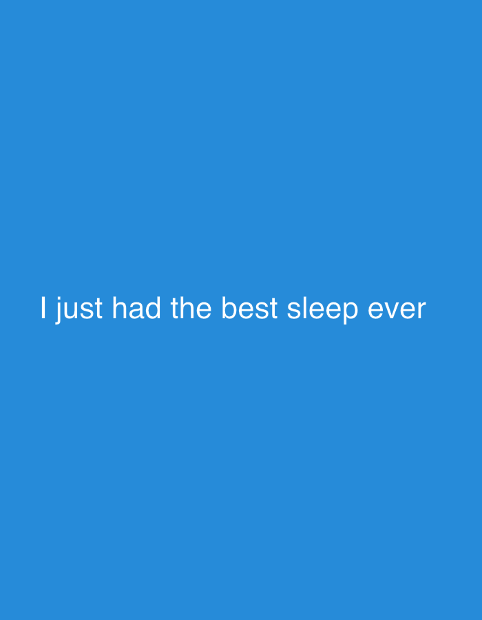 The image shows a blue background with the white text "I just had the best sleep ever" centered on the lower portion of the image. The image does not provide any geographic information, so it is not p…read more
