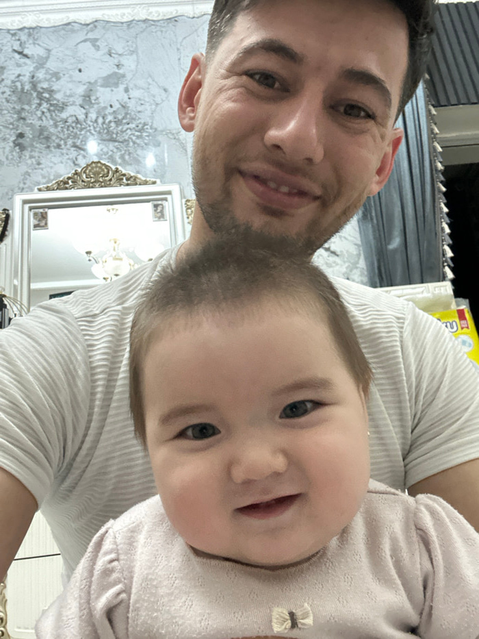 A selfie features a man and a baby. The man, on the left, has short dark hair and a light beard. He is smiling. Beside him, a fair-skinned baby with light hair looks directly at the camera with a slig…read more