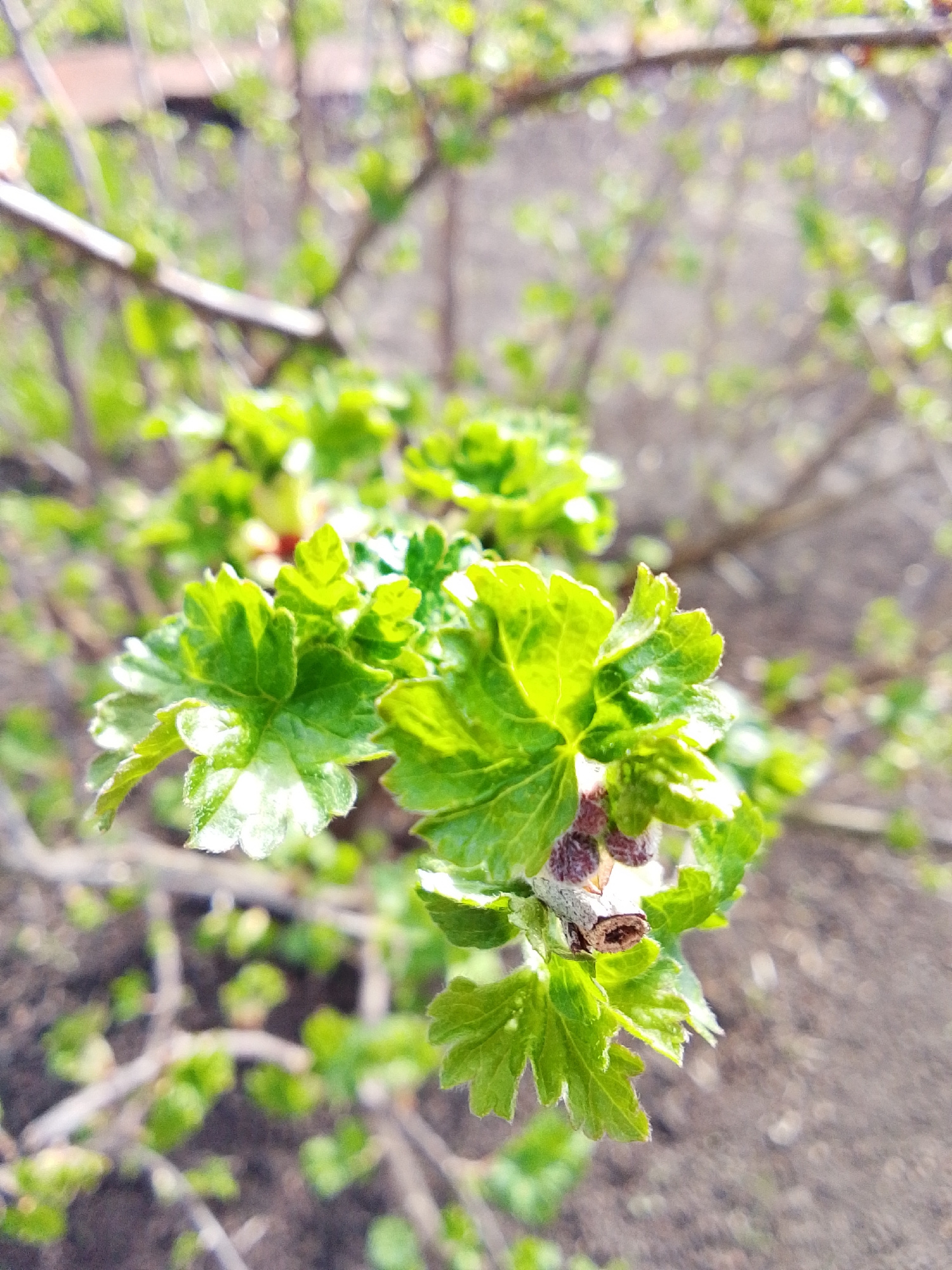 This close-up image captures a cluster of vibrant, fresh green leaves emerging on a plant branch, signaling the arrival of spring. The main subject, a group of young, bright green leaves with distinct…read more