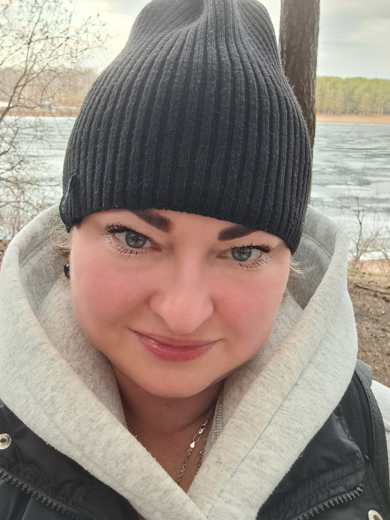 A medium close-up, portrait-style image features a young woman outdoors, looking directly at the camera with a gentle smile. She is wearing a dark, ribbed knit beanie, and a light grey hooded sweatshi…read more