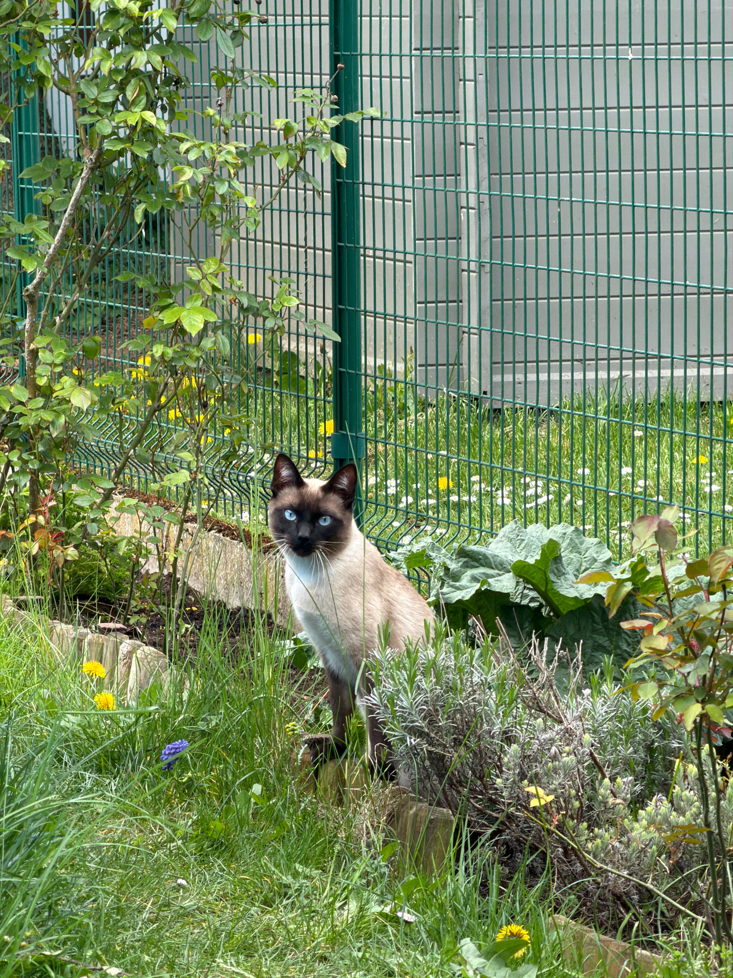 This image, taken in Esch-sur-Alzette, Luxembourg, features a striking Siamese cat in a vibrant garden setting. The cat, positioned slightly to the right of the center, is looking directly at the view…read more