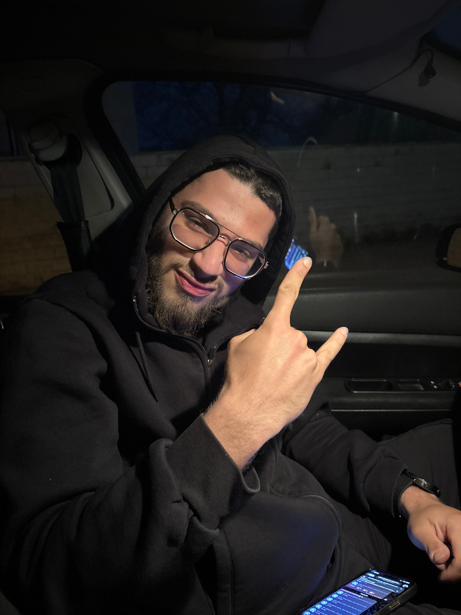 An informal portrait, taken inside a vehicle at night in Novi Iskar, Bulgaria, features a male subject posing for the camera. The man, appearing young to middle-aged, has dark hair, a beard, and wears…read more