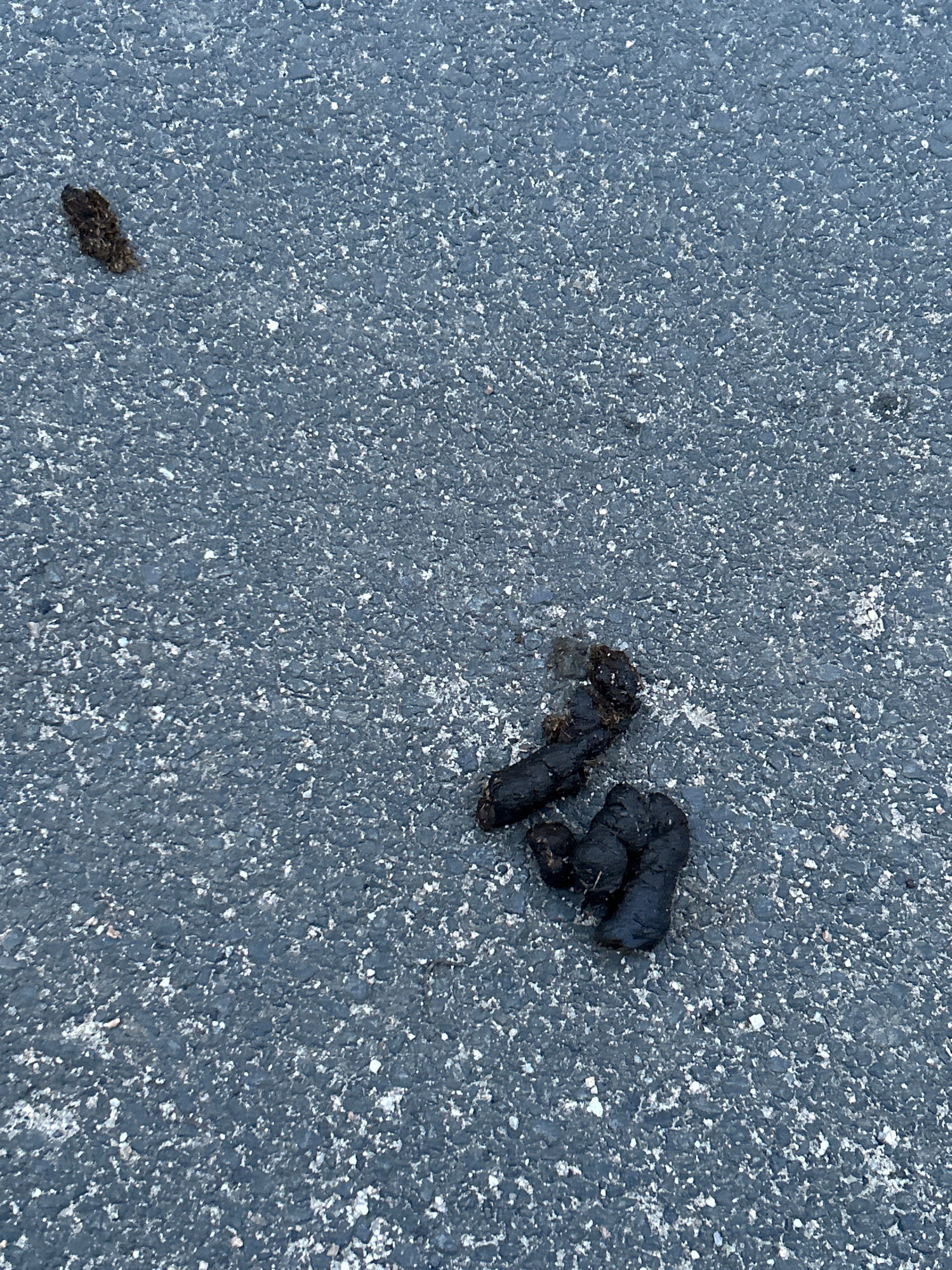 On a textured asphalt surface in an unidentified location, possibly Zlatograd, Bulgaria, there are two deposits of fecal matter. One deposit is a dark, almost black mass, while the other is smaller an…read more