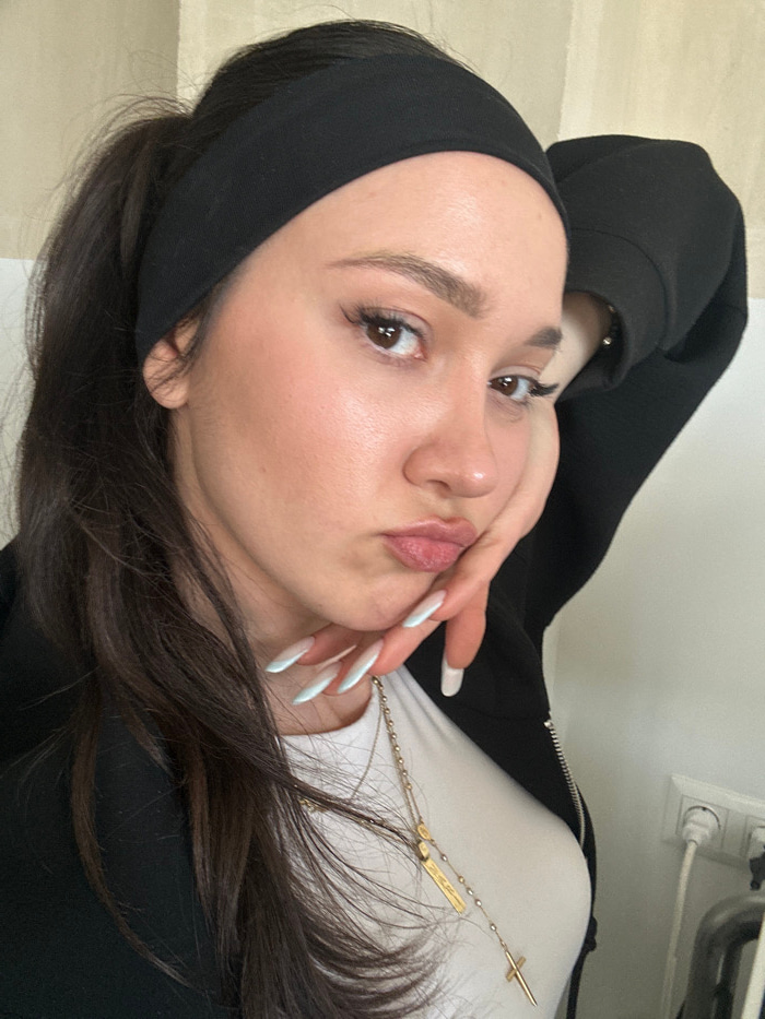 An indoor setting in the city of Zovuni, Armenia, depicts a young adult female from the chest up, positioned slightly off-center and looking directly at the camera. She has long, dark hair pulled back…read more