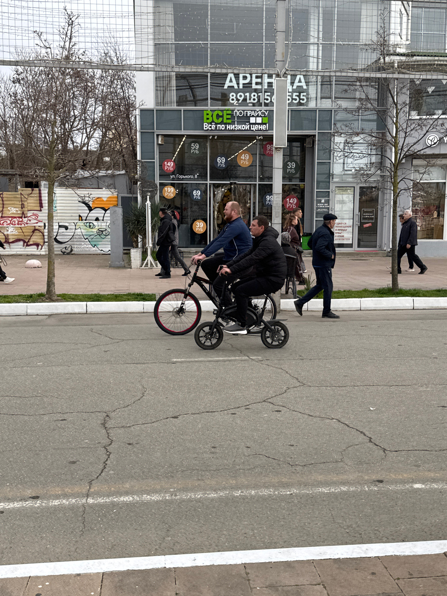 The image depicts an urban street scene in Anapa, Russia, specifically on Gorky Street, identified by the visible address "ул. Горького, 8" on a storefront. The scene occurs during daylight under an o…read more
