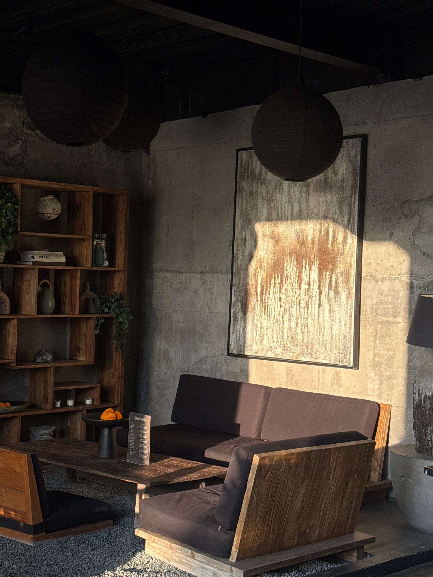 The image presents an overhead perspective of an interior space, potentially a lounge or seating area. The location is suggested to be Pererenan, Indonesia, though no explicit landmarks confirm this.…read more