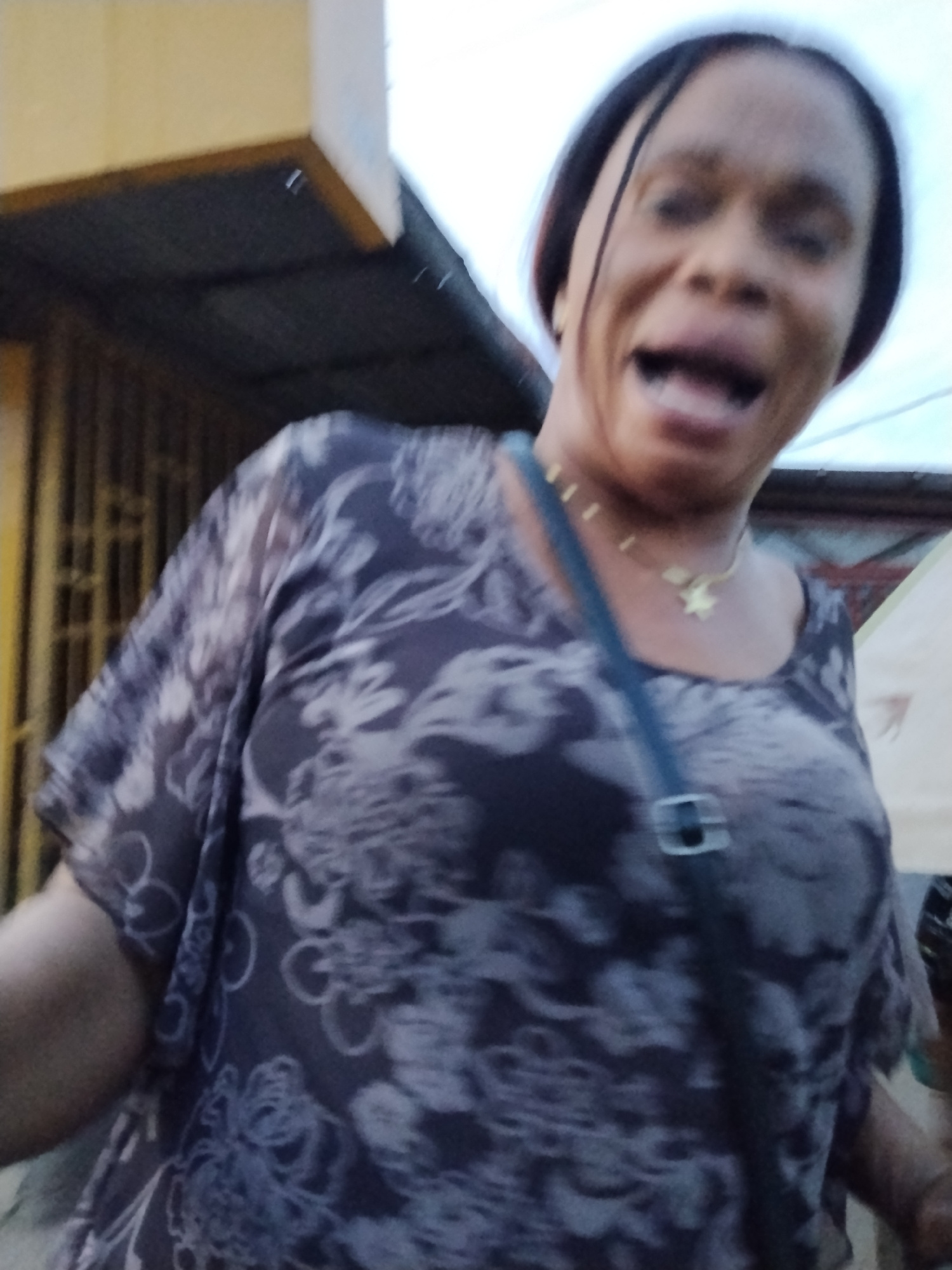 A woman wearing a floral-patterned top, a gold necklace with a star pendant, and a dark-colored crossbody bag is speaking. The scene appears to be outdoors in the city of Ura Nta Umuarandu, Nigeria, b…read more