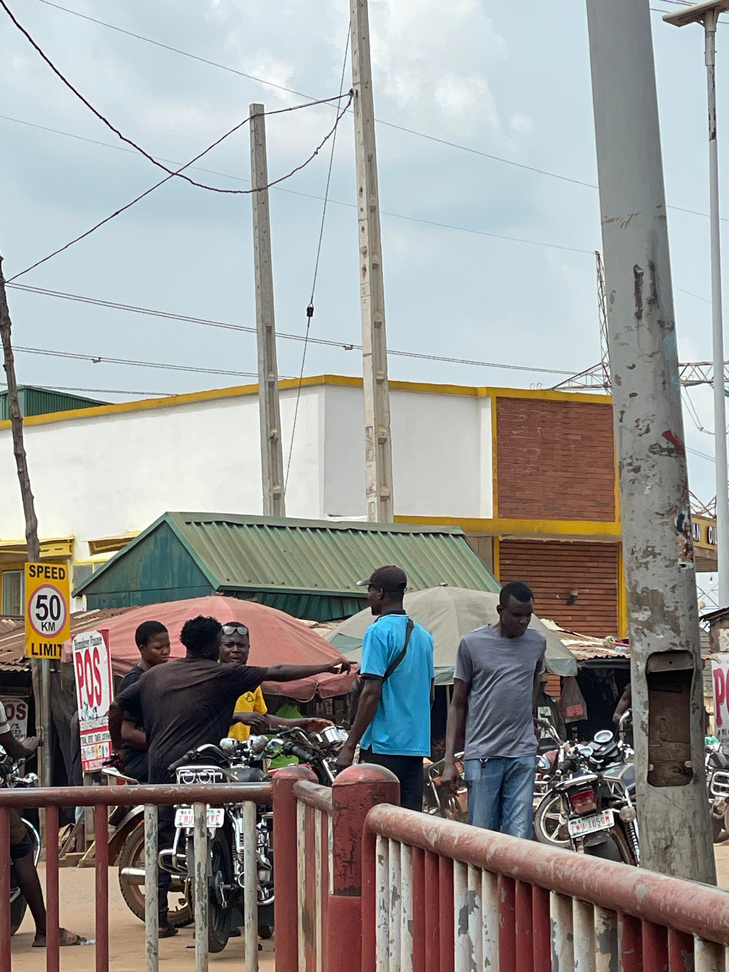 The image shows an outdoor scene in Ukukwa, Nigeria. Several people are present, including three men wearing casual clothing (gray shirt, blue shirt, brown shirt). They stand near the edge of a street…read more