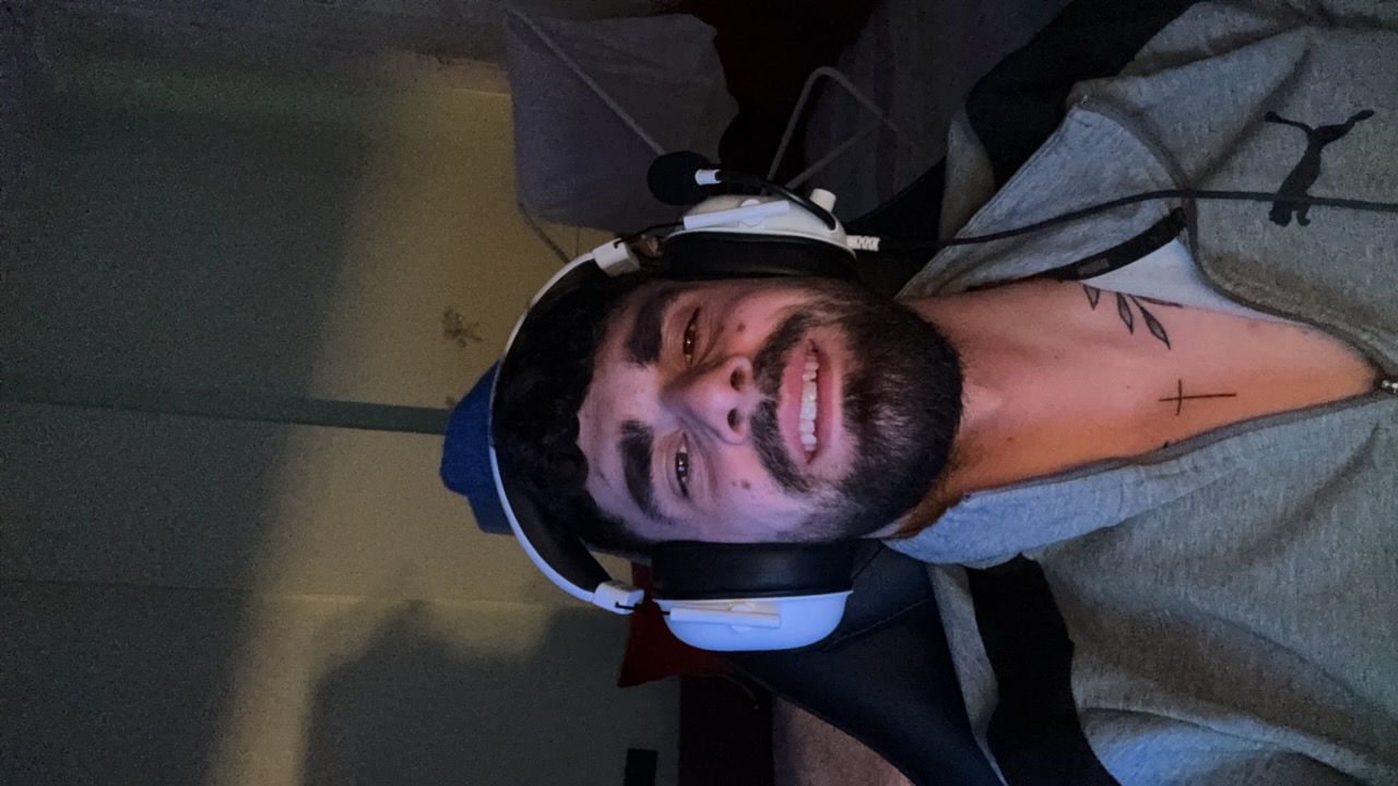 The image depicts a man in an industrial setting, possibly a warehouse, in the city of Unknown, Unknown. The man, with a dark beard and curly hair, has his mouth open and tongue showing. Behind him ar…read more