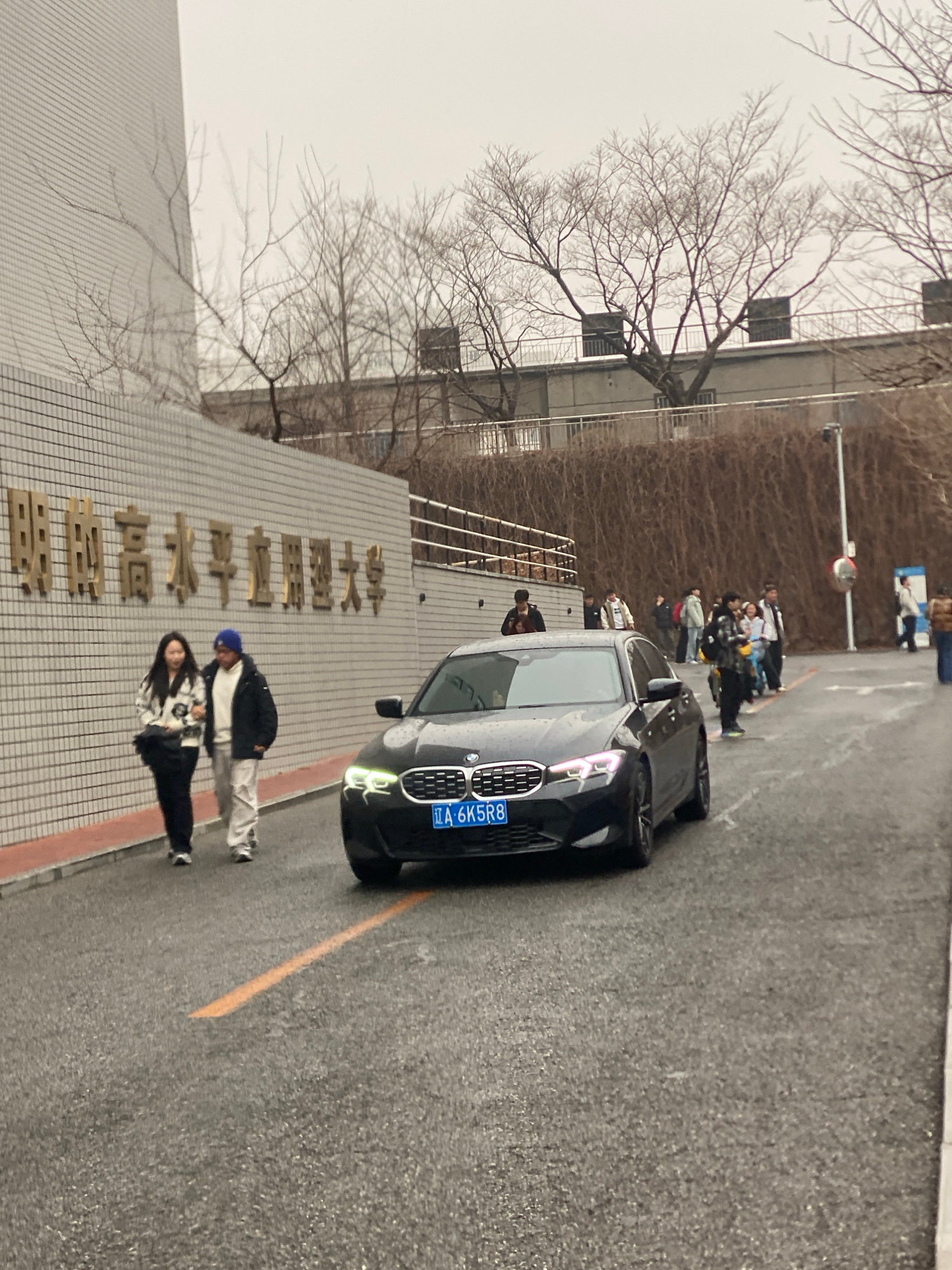 The image shows a street scene in Zhongtun, China. A black car is parked at the curb with the license plate "辽A 6K5R8" visible. Two people are standing on the sidewalk next to the car. A group of peop…read more