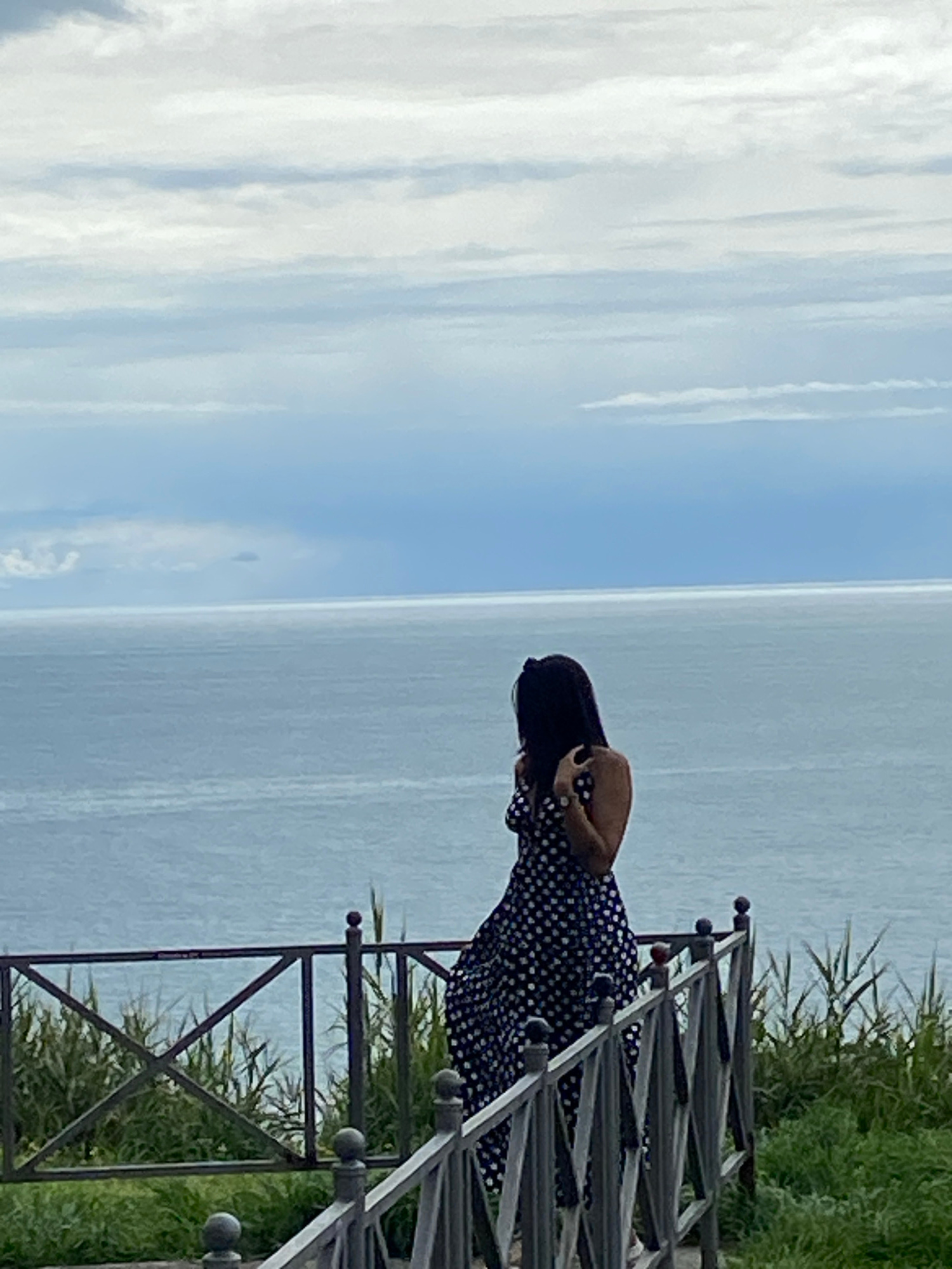 A single individual, a female with dark hair, stands on an elevated viewing platform in Prijevor, Montenegro, facing away from the camera and looking towards a large body of water. She is positioned s…read more