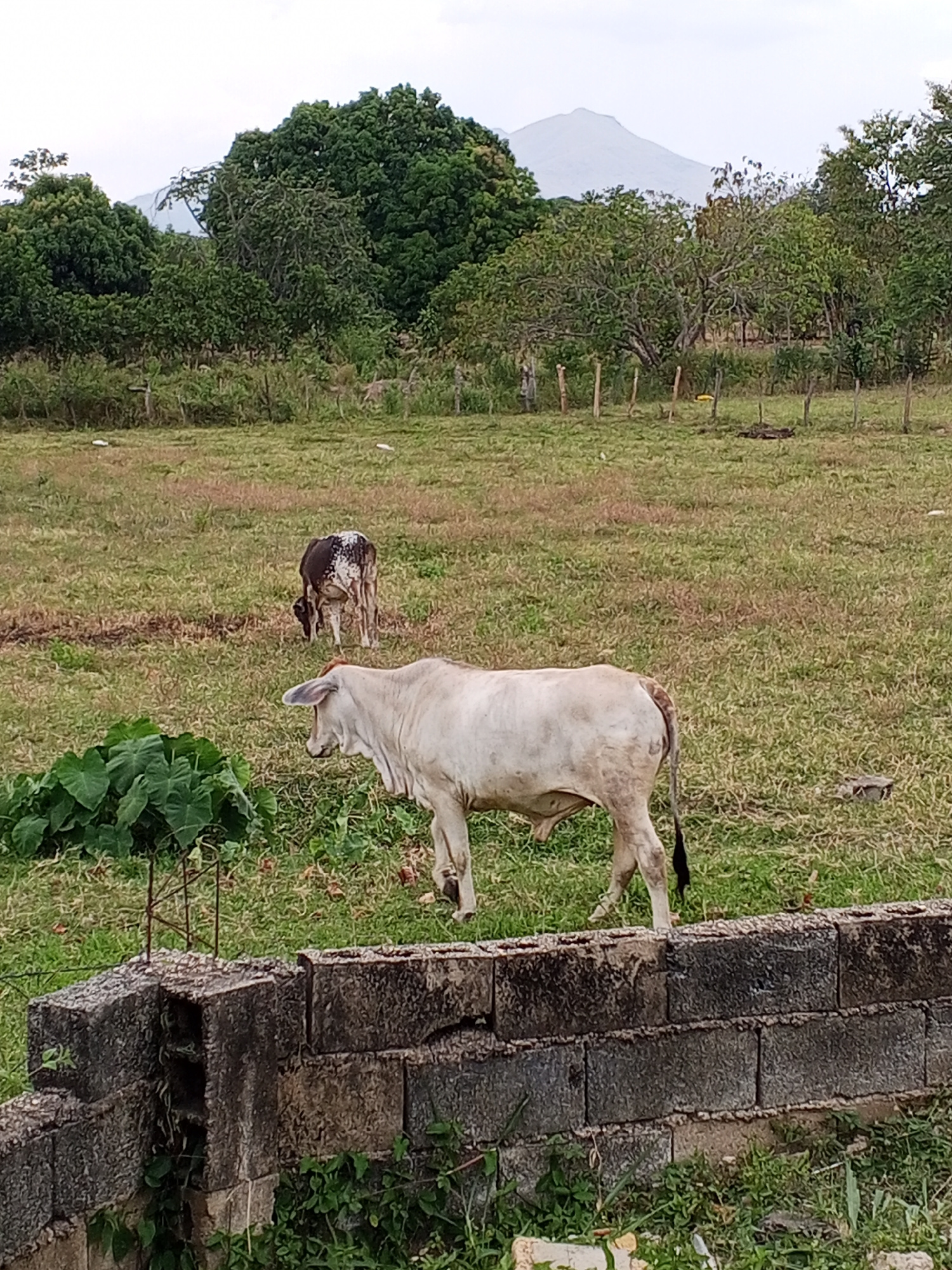 The image shows a rural landscape in Tinaquillo, Venezuela. In the foreground, a rough, gray block wall runs horizontally across the lower part of the image, with weeds and grass growing along its bas…read more