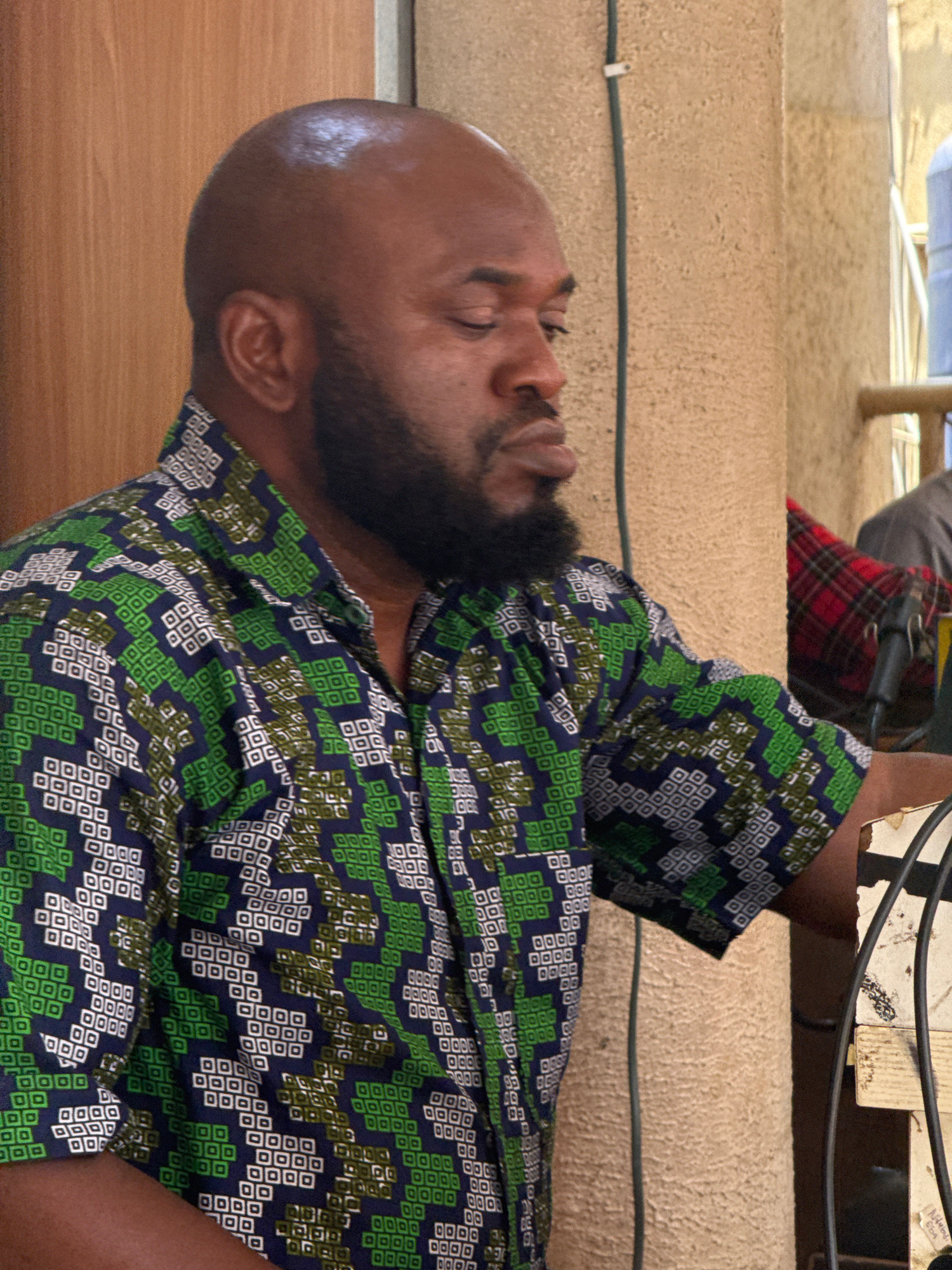 An image, rotated 90 degrees clockwise, shows a man with dark skin, a shaved head, and a neatly trimmed dark beard, apparently resting or in contemplation. His eyes are closed, and his expression is s…read more