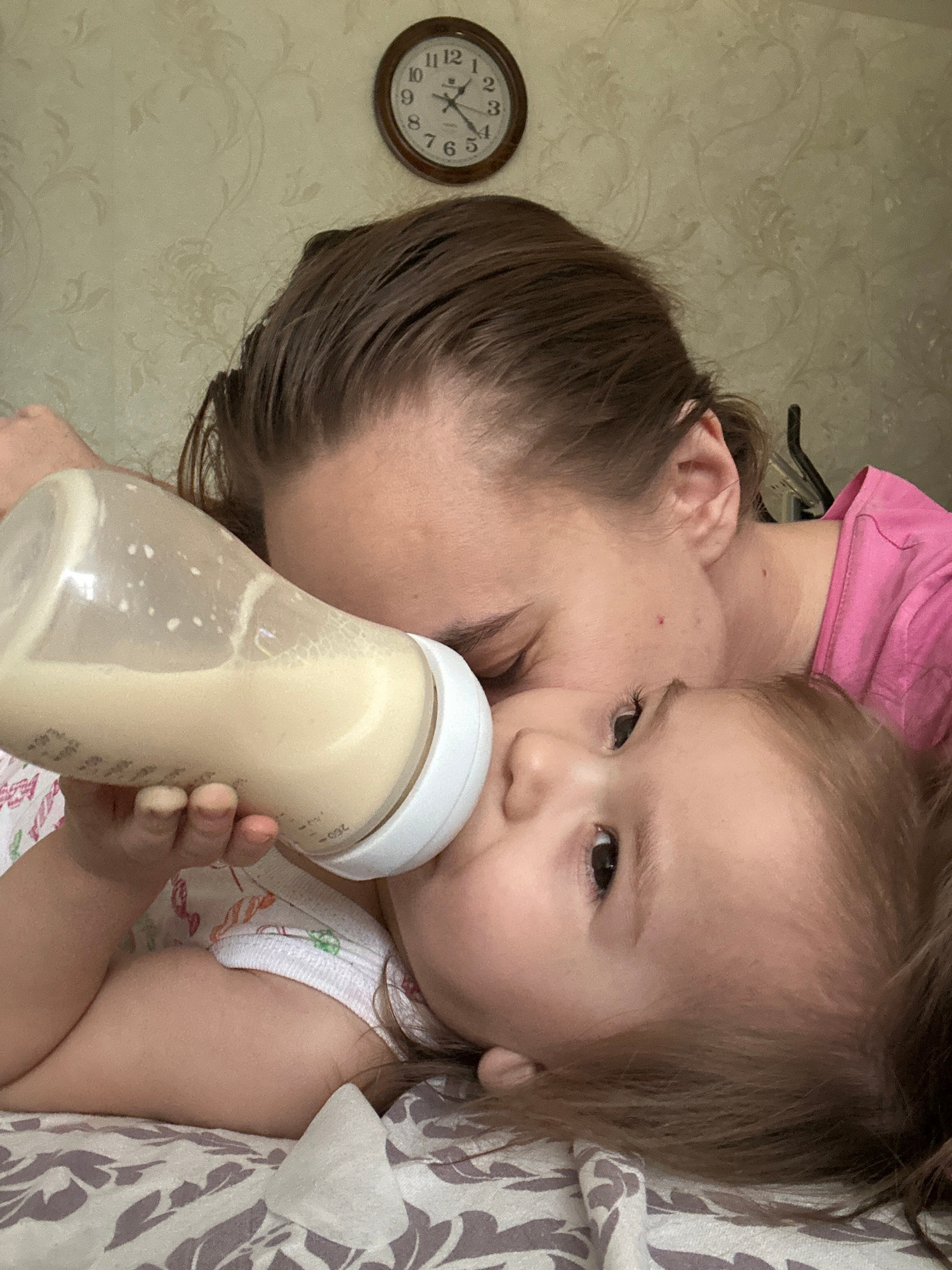 This image presents a heartwarming, overhead view of an adult and a young child in an intimate moment, likely in a home setting in Uva, Russia. The adult, whose face is largely obscured but shows part…read more