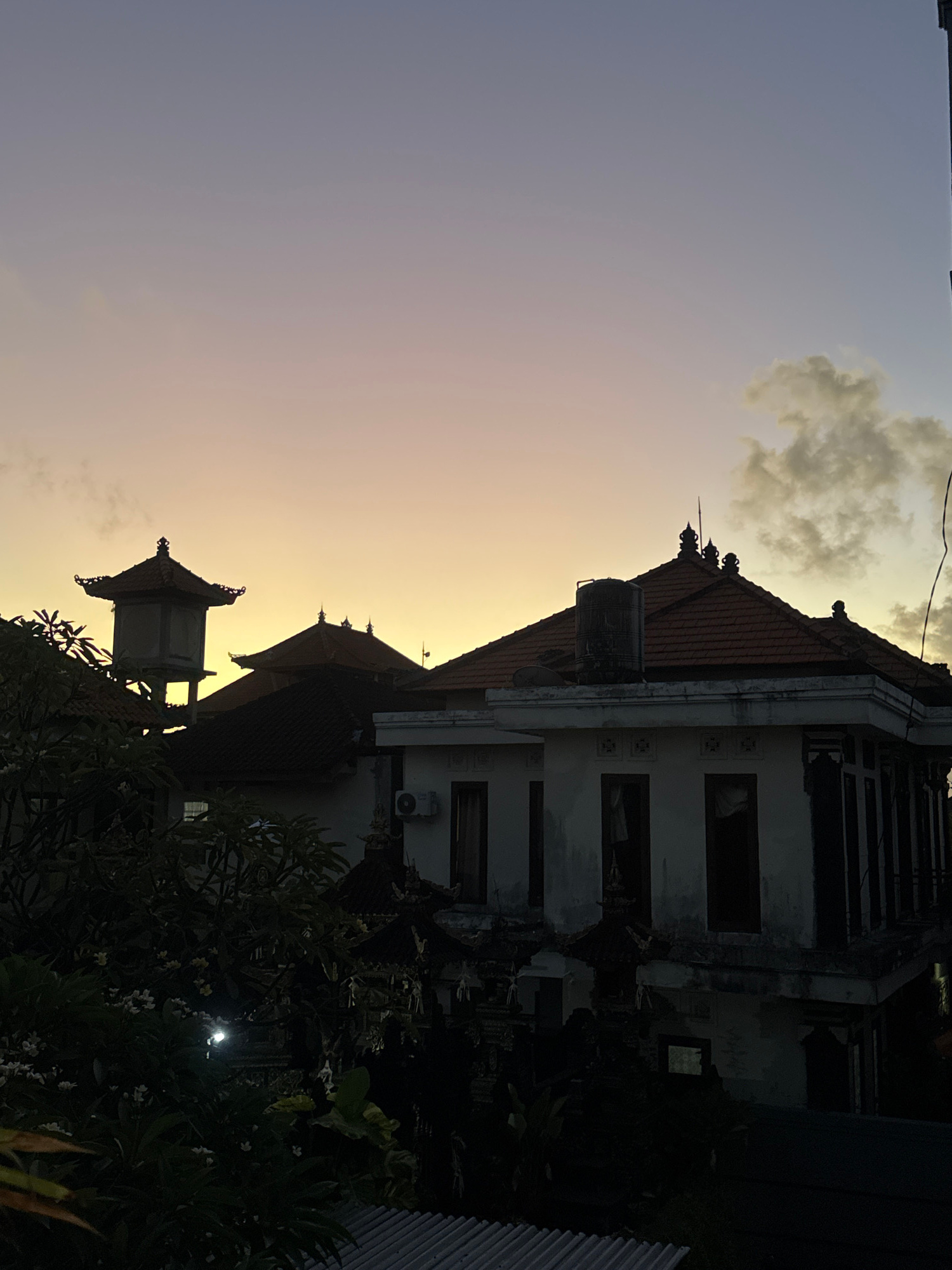 The image displays an outdoor scene at either sunrise or sunset, characterized by a soft, warm gradient in the sky transitioning from golden-yellow near the horizon to a muted purple-blue overhead. Si…read more