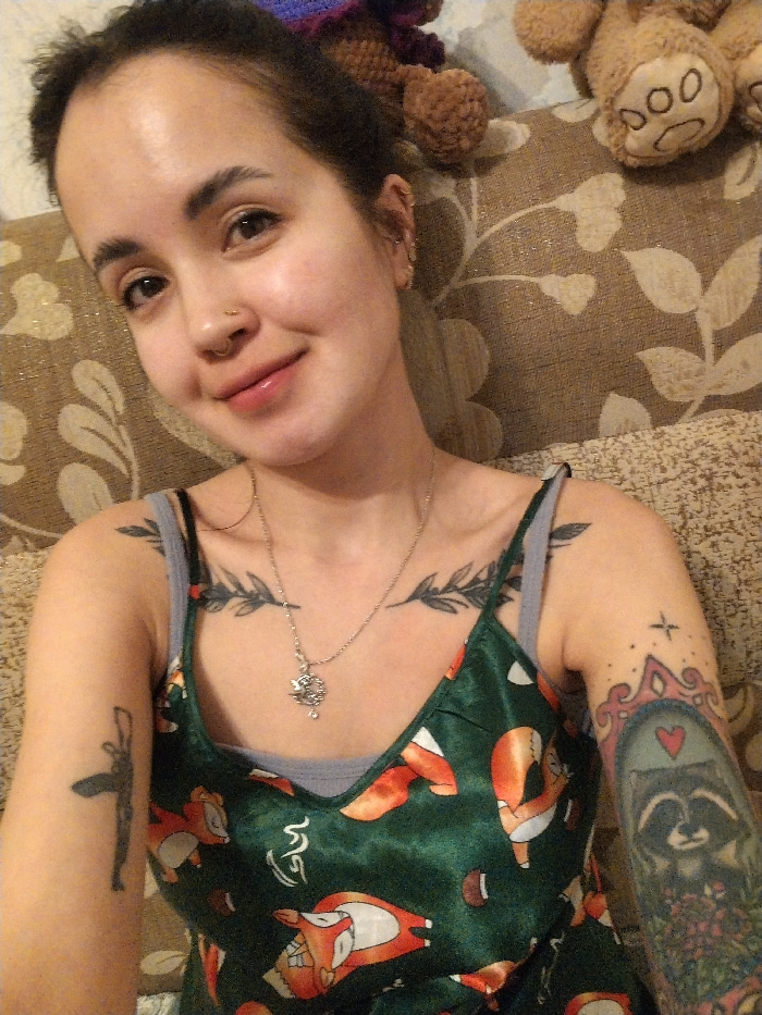 The image depicts an adult female subject positioned from the mid-torso up, centered in an indoor setting. The location in the city of Noviy, Russia, is not verifiable from any visual elements withinโฆread more