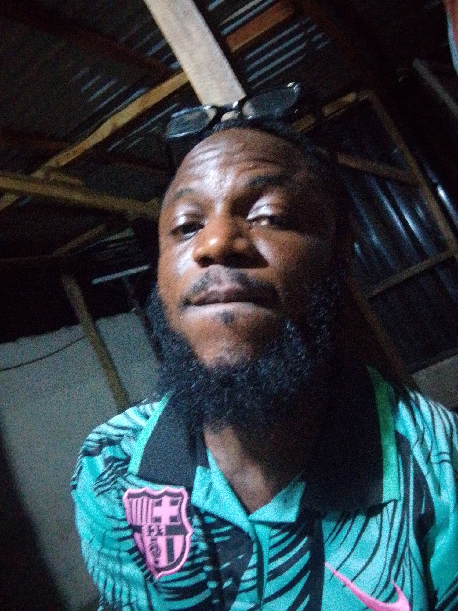 The image shows a man with a beard, wearing a teal and black patterned shirt with a pink logo and a pink Barcelona FC badge. He has glasses resting on his head. The location appears to be indoors, wit…read more