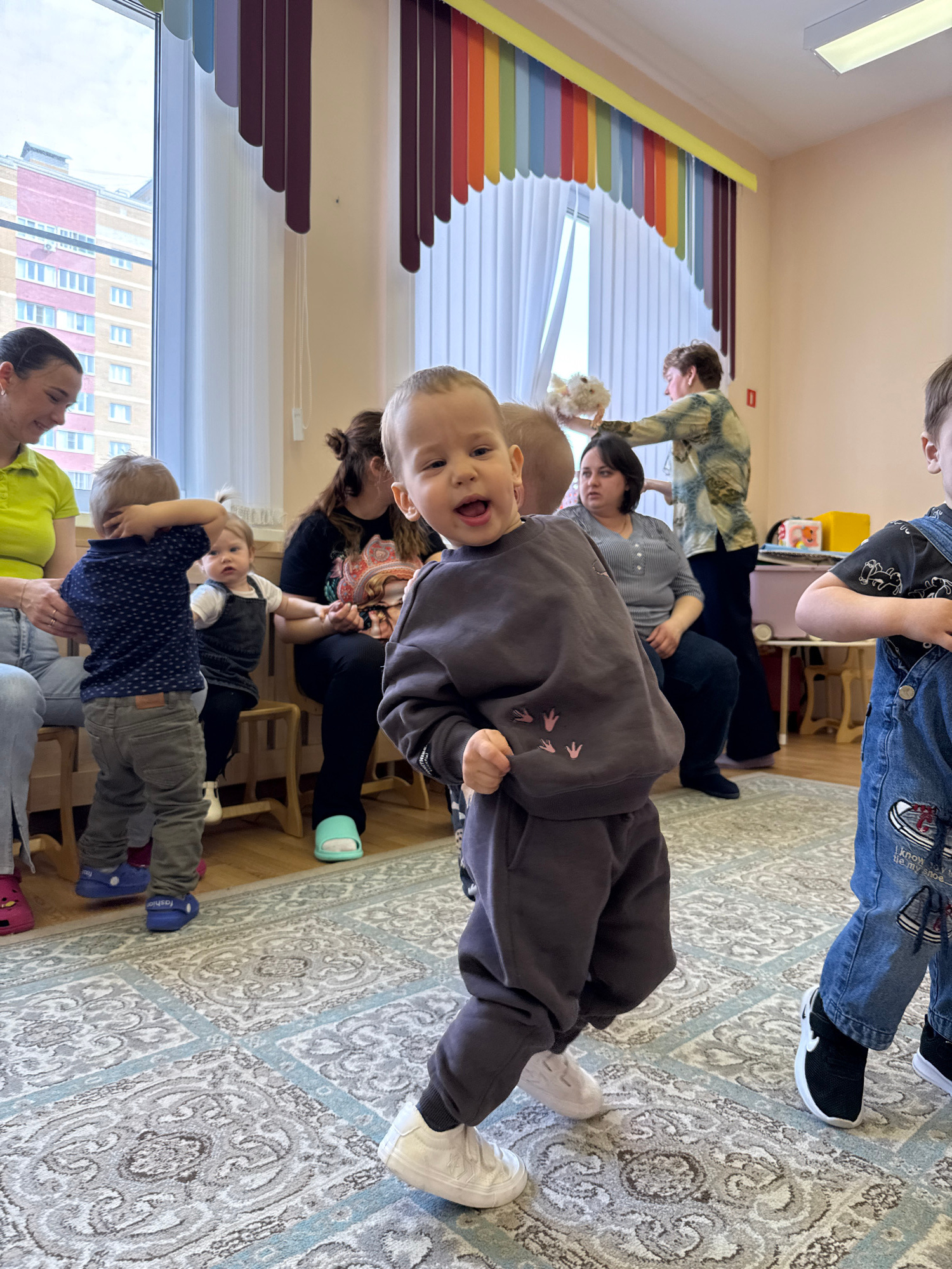 The image shows a group of people, mostly young children, inside a room. The location is presumably Rusanovo, Russia. There are multiple adults interspersed among the children, suggesting a caregiverβ¦read more